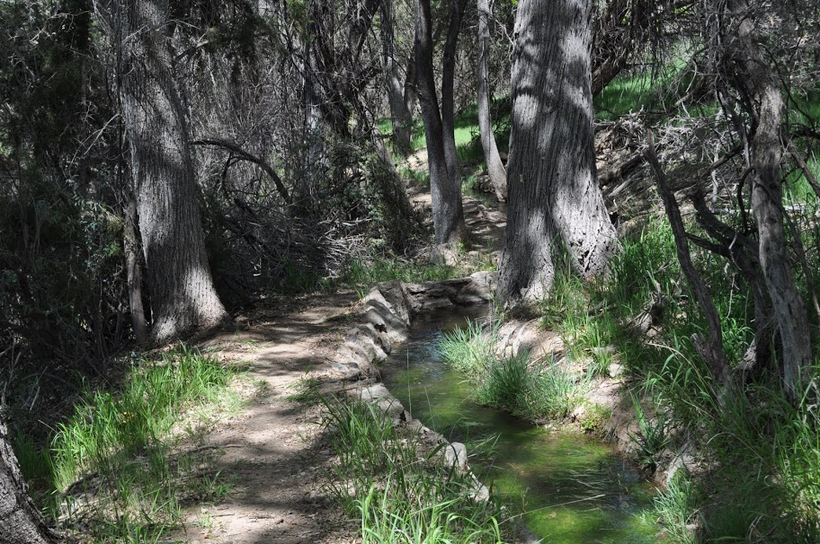 The water exits the Well through a 300 foot cave and into an irrigation ditch that was constructed over 1,000 years ago by the Sinagua people, who then used the water to farm the area. During your visit, make certain to go to the backside of the Well and take a stroll along the irigation ditch, pictured on the right. It is an impressive engineering marvel. The temperature drops under the canopy of trees. and with the lush vegetation. The gurgling water and the lush vegeation it supports are ...examples of how water can transform the desert into an oasis - the gurgling is the sound of life.
